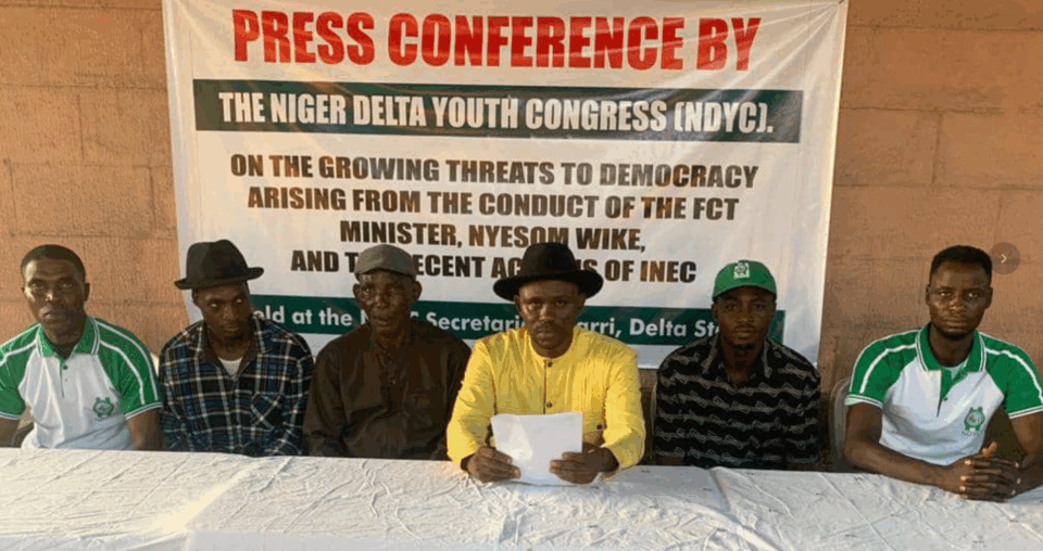 The Niger Delta Youth Congress (NDYC) has issued a strongly worded statement warning that Nigeria’s democracy is facing “growing and escalating threats” from both the Minister of the Federal Capital Territory, Nyesom Wike, and the recent actions of the Independent National Electoral Commission (INEC).